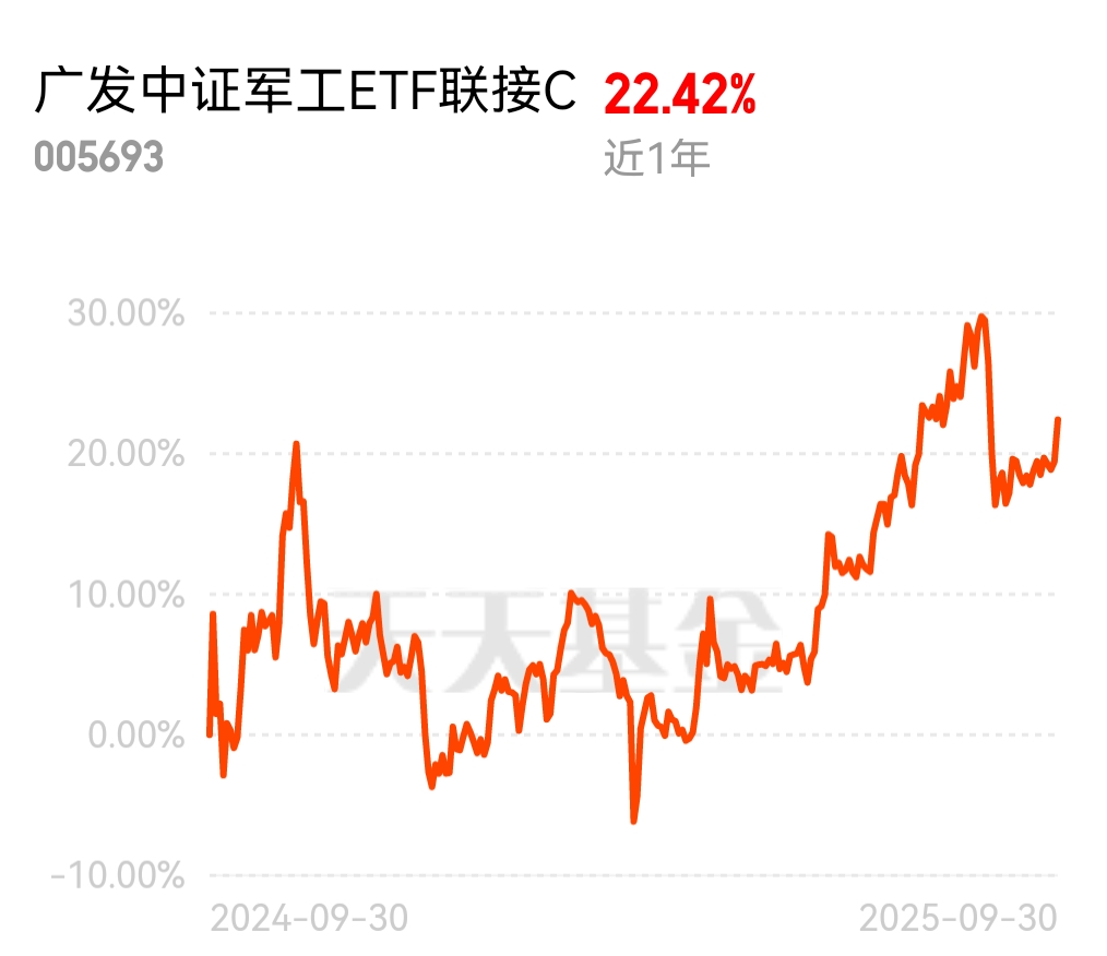 拿了几个月感觉挺不错的,现在第三波牛市来了估计$广发军工005693$国庆过还能再涨涨$广发中证军工ETF联接C$