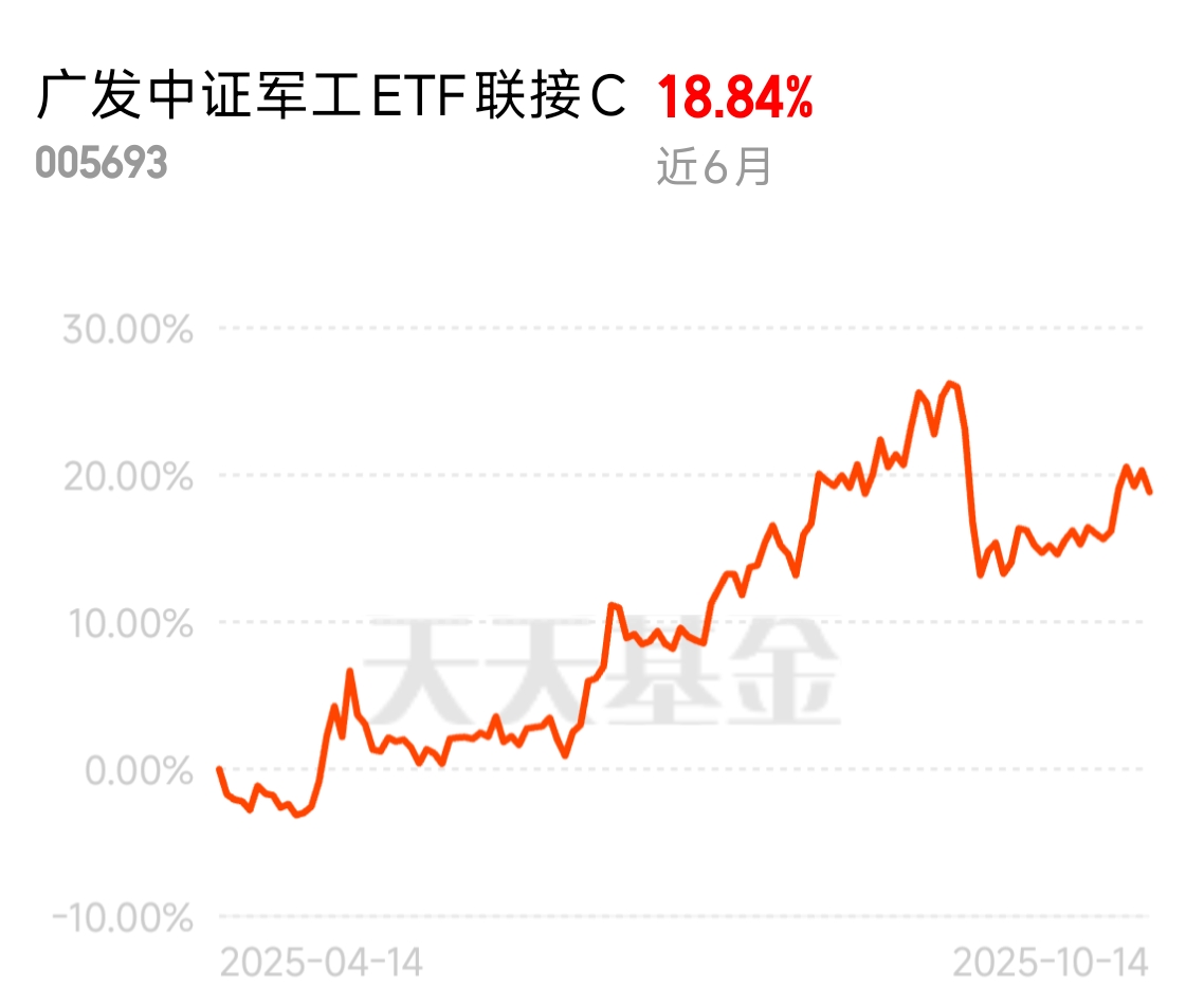 每天打开看一眼就走了,现在不能跑,现在跑了就是真韭菜了$广发中证军工ETF联接C$
