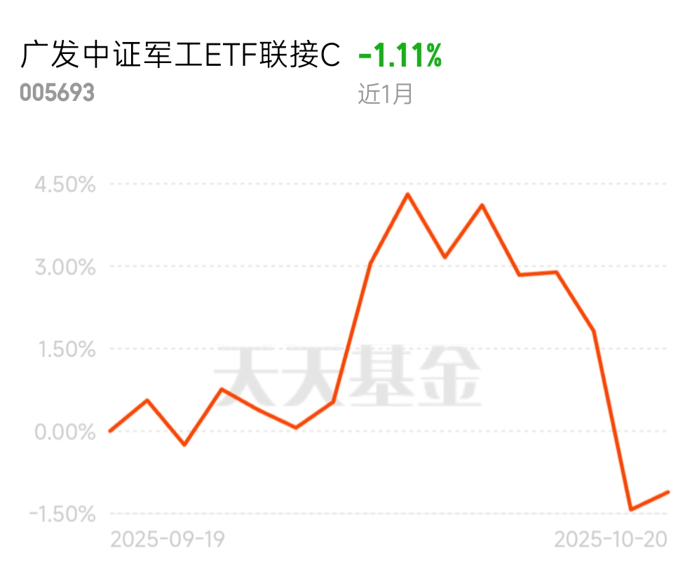 昨天涨的有点少,今天多涨一点啊$广发中证军工ETF联接C$