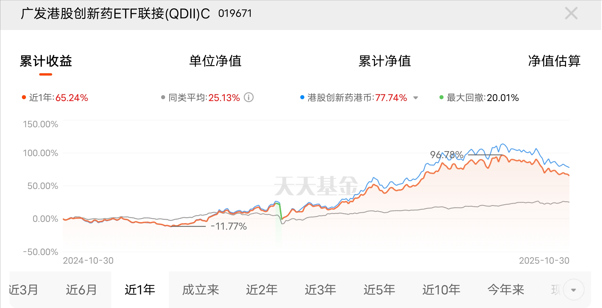 看样子还能继续涨!今年创新药的行情起起伏伏,现在终于能安心牛一回了吗,期待$广发港股创新药ETF联接(QDII)C$ 吃大肉!