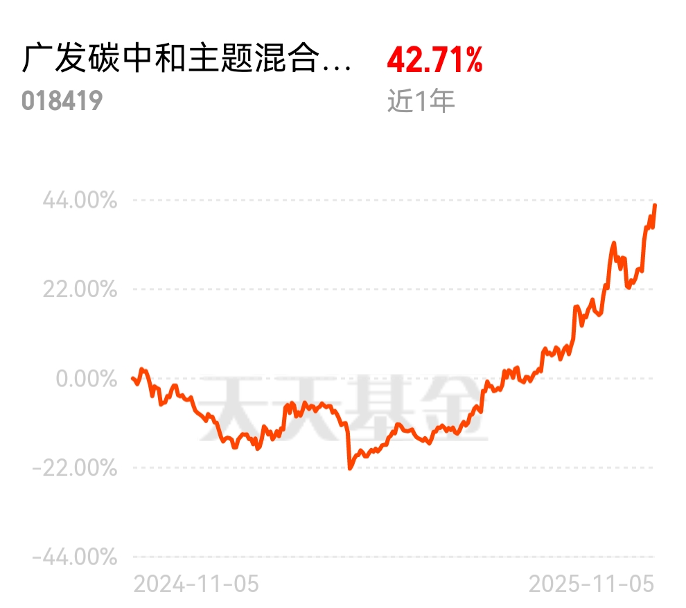 结构性牛市最大特点就是要涨就个别长期涨,碳中和大概率其中一员,感觉$广发碳中和主题混合发起式C$ 还能涨不少