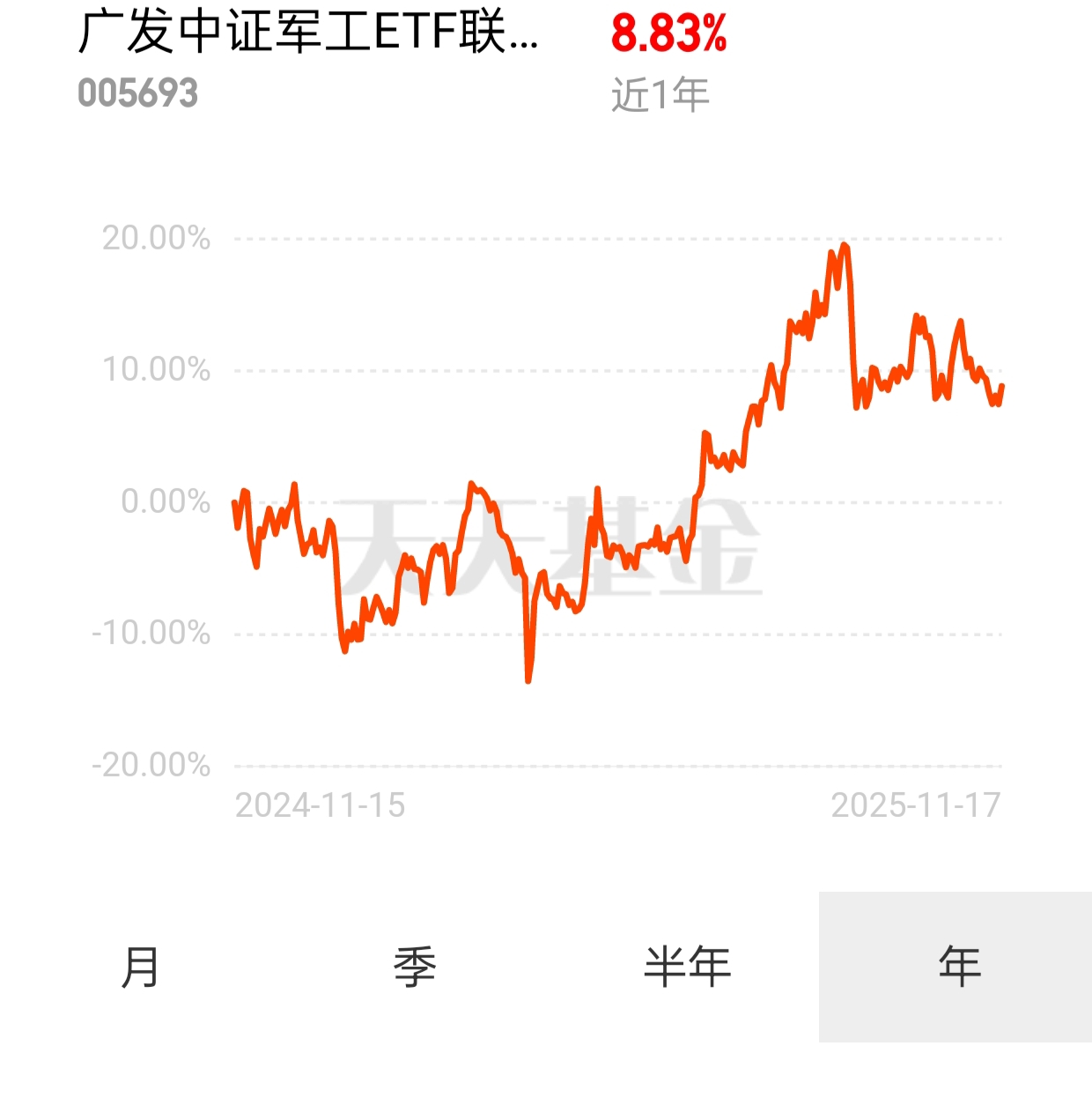 终于等到军工发力,昨天$广发中证军工ETF联接C$(005693)大涨1.27%!季度报表都显示板块逐季改善,四季度十五五订单要落地,还有军贸催化,行情肯定要上行。这基跟踪中证军工指数,精准覆盖航空航天、兵器装备、船舶制造三大关键主线,能很好的把握军工反弹行情#今年买基金赚了多少钱?#