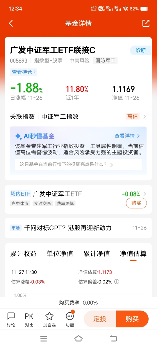 这只跟踪指数的军工基挺稳的,板块本身攻守兼备,长期投资没啥毛病,定投一年下来赚的比想的多