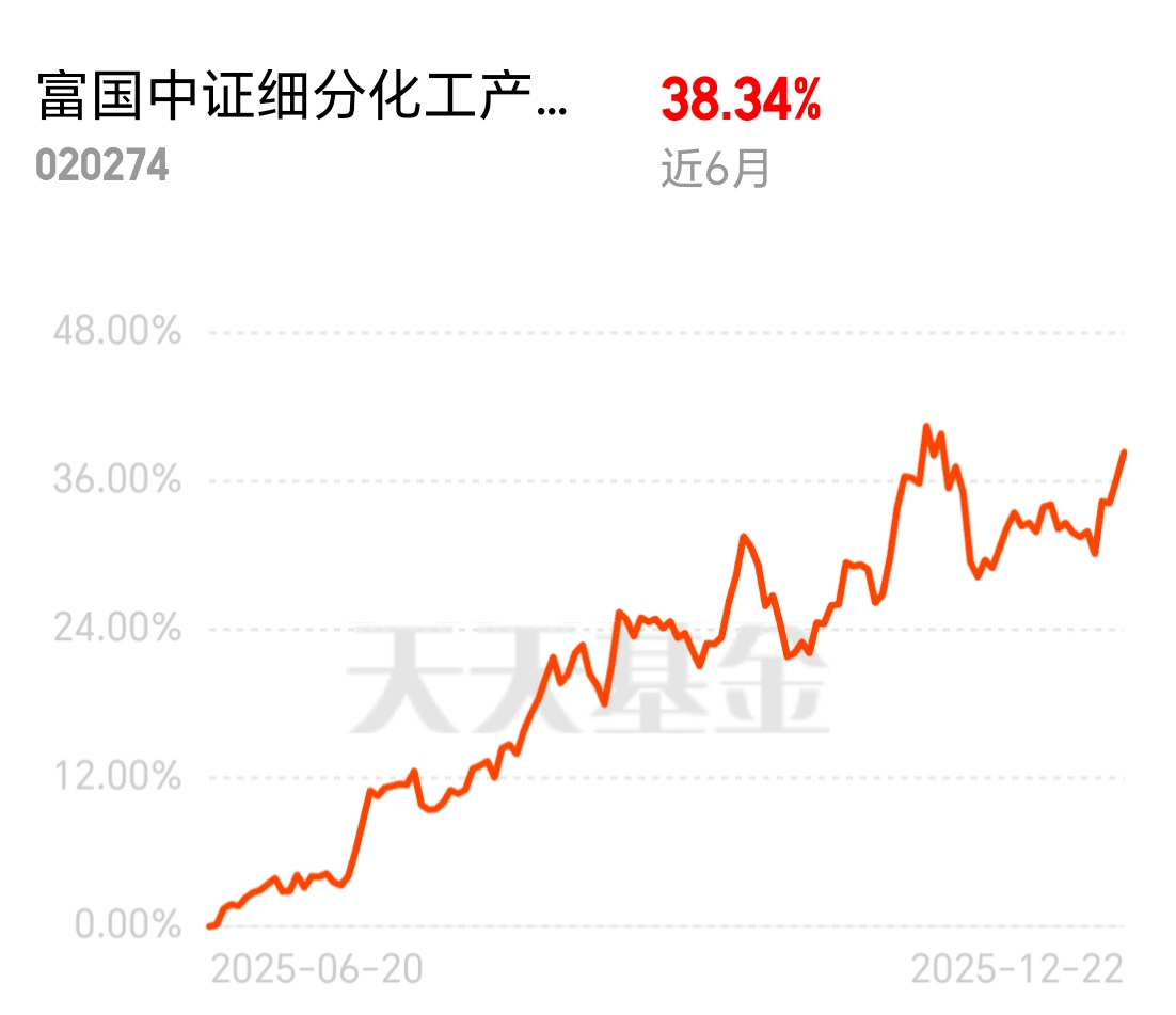 比起专注航天航空装备的广发中证军工ETF联接C,我呢更看好富国中证细分化工产业主题ETF联接C在当前阶段的弹性近1年涨了33%,近6个月涨了38%,连涨2日趋势确立;化工板块近期活跃,受益于开工率提升、产品价差反弹及龙头企业嬴利改善预期,该基金聚焦化学原料、化学制品等细分龙头,布局高成长性方向,不妨结合自身节奏关注这一顺周期细分赛道。