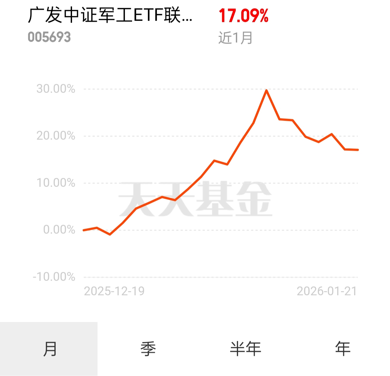 今天沪指震荡跳水时,航空航天板块突然发力领涨,直接带动军工反弹。我盯着$广发中证军工ETF联接C$(005693)看了半天,盘中净值估算大涨近3%,这波反弹太及时了。早盘主力资金也很给力,开盘不到1小时就净买国防军工行业近120亿,资金用脚投票说明板块热度。这只基金跟踪中证军工指数,覆盖航空航天等主线,近一月涨17.09%,跟着布局心里有底#CPU概念突然大火:巨头产能已被预订一空#