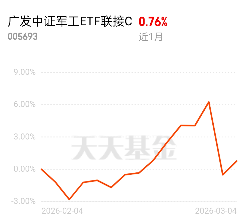 今天军工硬气了!外面美伊打到第五天,美国在巴林的基地被炸了10个目标,这种时候,军工要是再不涨,那就没天理了。$广发中证军工ETF联接C$