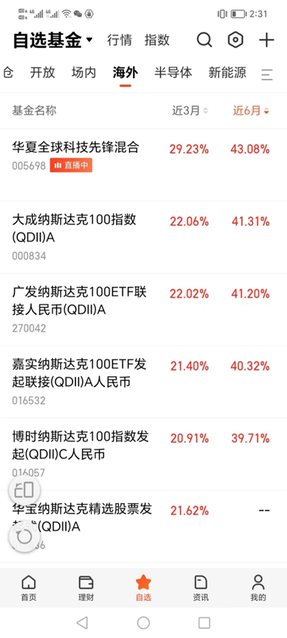 图1:华夏全球科技先锋近6月的收益在同类431只基金中排名第二