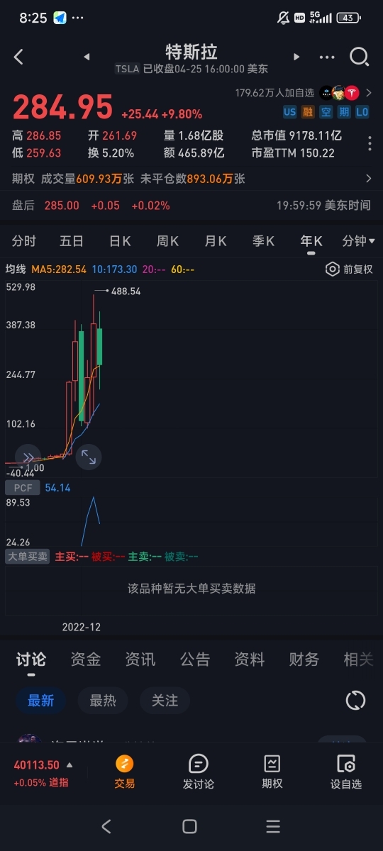 有谁能建议上经理,叫她赶紧把特斯拉给换回来长期看特斯拉能涨到1500点以上。