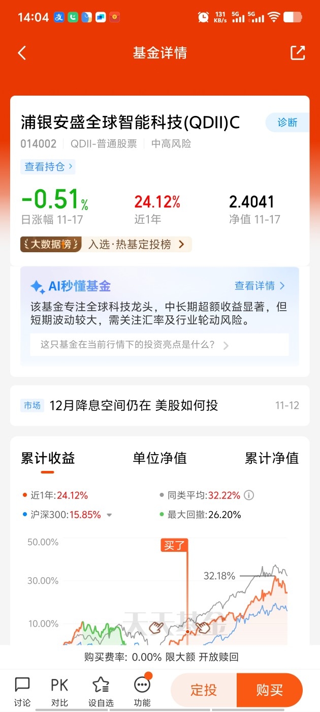 美联储再降息,降息周期开启美股科技投资窗口,流动性充足助力美股走强,$浦银安盛数字经济混合C$ 表现不错值得期待