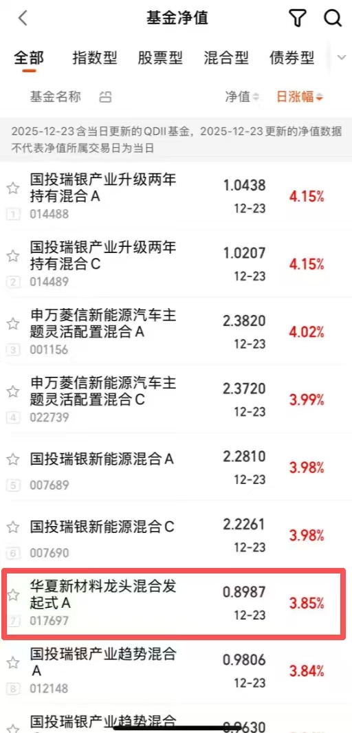 这基的收益能力太让人兴奋了吧,昨天收益3.85%全场第四,今天板块继续上扬2%+,叠加$华夏新材料龙头混合发起式A$持仓聚焦AI新材料,弹性大,反弹高,后面的收益更值得期待了