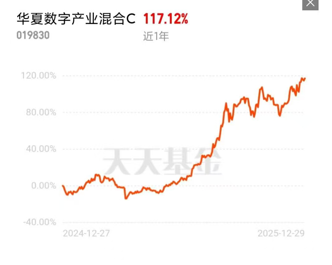 近一年收益117%,昨天收益1.09%算是逆势反弹啊,布局重仓AI算力,行业集中+个股集中的策略,弹性足,半年就能业绩翻倍的基,增收避险都是很强的$华夏数字产业混合C$