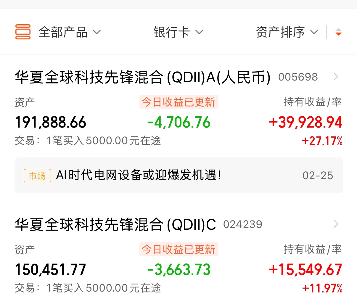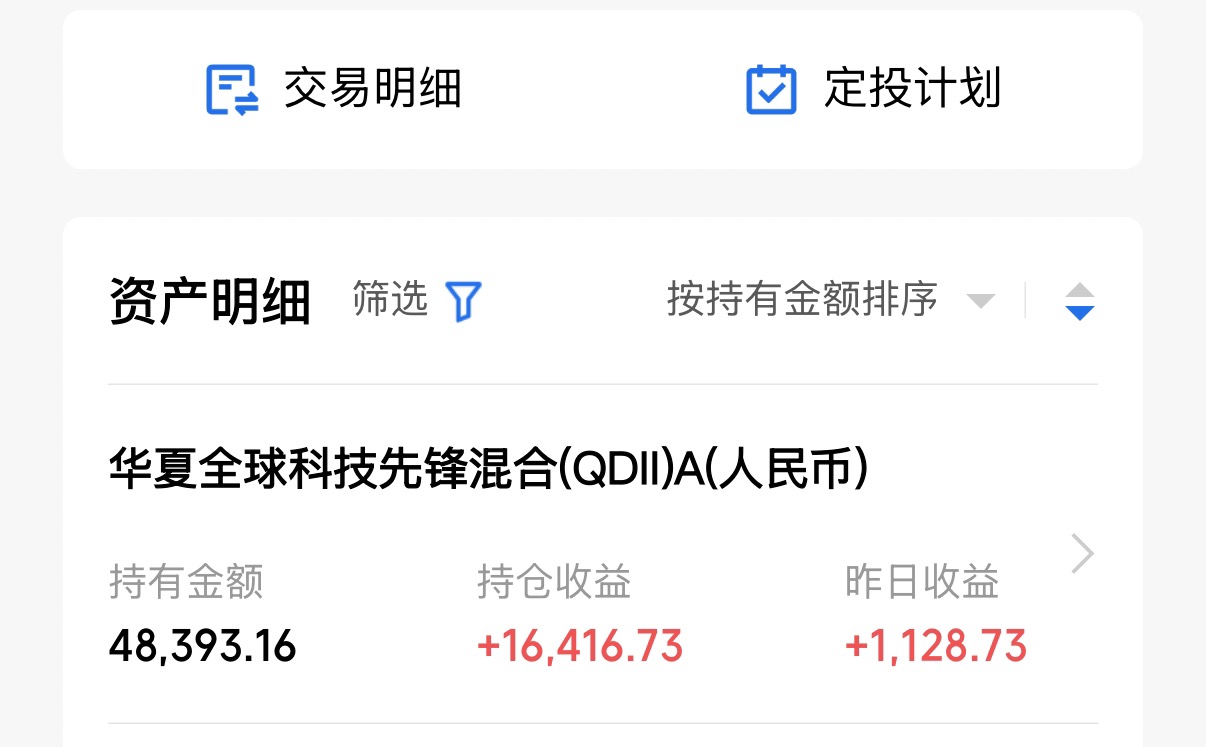 这是在四个账户持有的华夏先锋,还有一些银行账户也持有,但金额较少,基本都放着不看了。