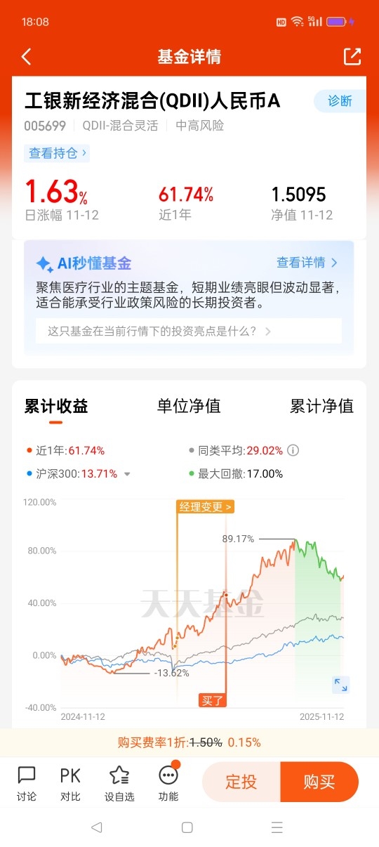 $工银新经济混合(QDII)人民币A$ 聚焦港股创新药优质公司,是一键布局创新药投资机会的优质选择,昨天涨1.63%,今年以来上涨76.72%(同类基金平均值32.26%),在同类基金中排名前列,超额收益显著;工银瑞信基金赵蓓经理从业十年以上,投资风格稳健。