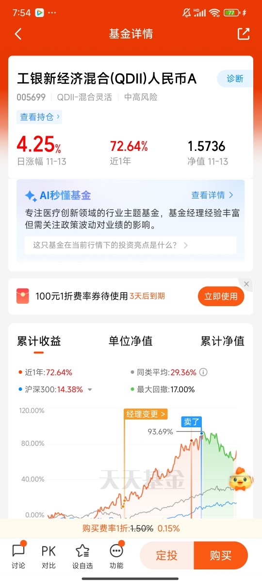 #创新药或迎利好#$工银新经济混合(QDII)人民币A$ #晒收益#