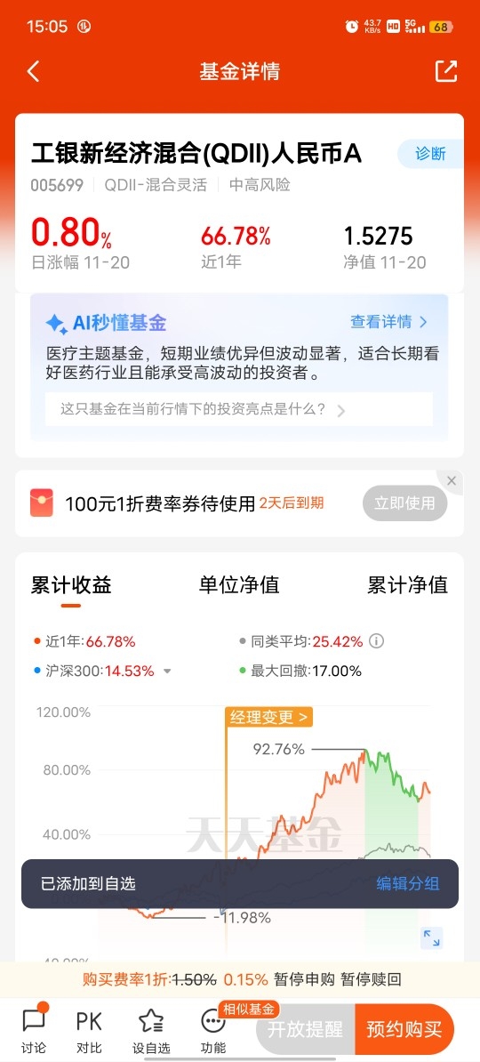 #创新药或迎利好#$工银新经济混合(QDII)人民币A$