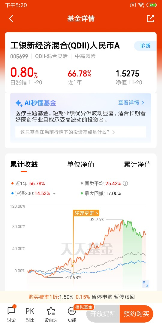 $工银新经济混合(QDII)人民币A$ 重点关注创新医药投资,目前正是我们左侧布局医药板块的有利工具。