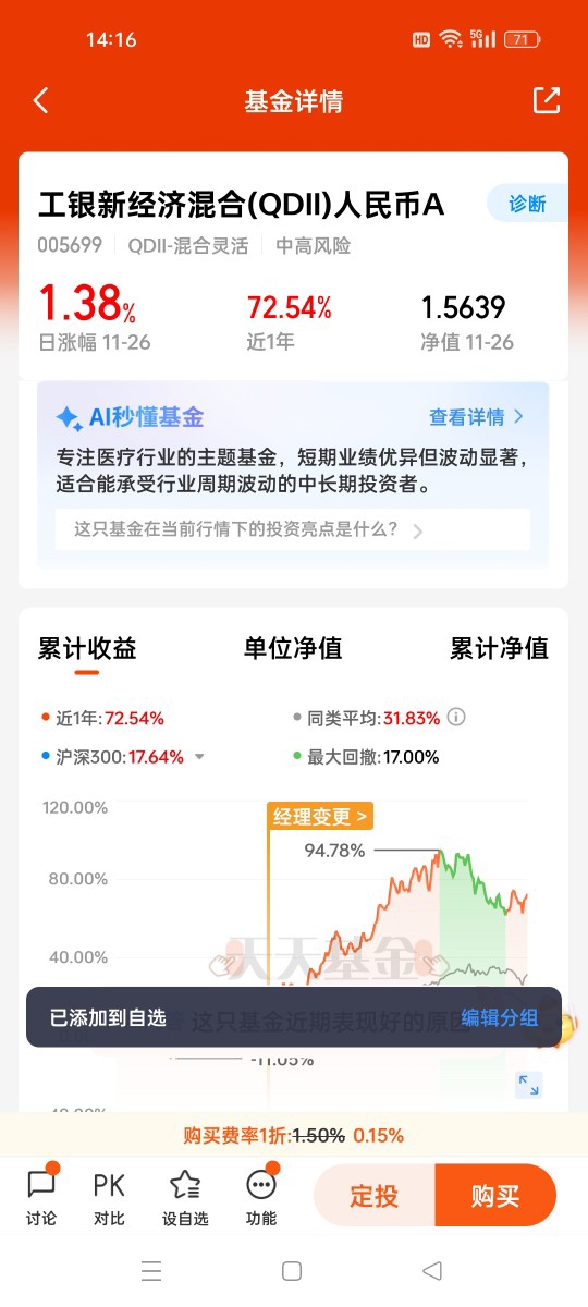 $工银新经济混合(QDII)人民币A$ 的投资策略完美适配行业趋势。基金持仓与港股通创新药指数重叠度超80%,聚焦具备全球化潜力的龙头企业,同时借助港股国际化平台属性,紧跟跨国药企发展步伐。基金经理赵蓓“深度研究、长期持有”的理念,与创新药长周期研发特性高度匹配,而工银瑞信强大的投研团队为个股筛选提供了坚实支撑。