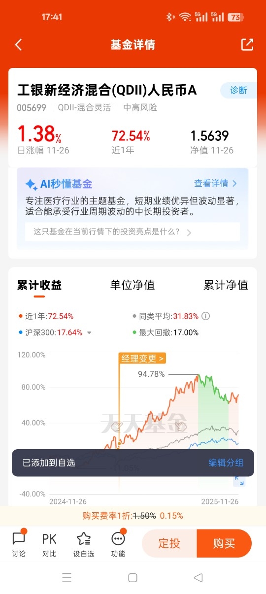 $工银新经济混合(QDII)人民币A$当前市场处于震荡调整阶段,创新药板块在经历