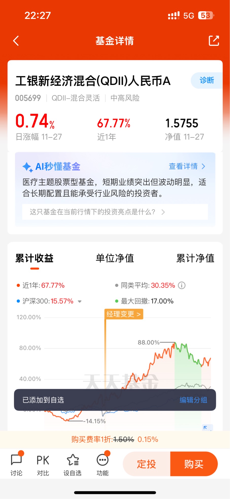 当然,投资没有绝对的确定性。这只基金作为QDII,会面临汇率波动、海外市场政策变化等风险,创新药板块本身也存在研发失败、估值波动的可能。但对长期投资者来说,这些短期风险并不影响行业的长期趋势。我已经把这只基金作为组合中的“赛道型核心仓”,打算通过定投的方式持续加仓,用长期持有来平滑波动。