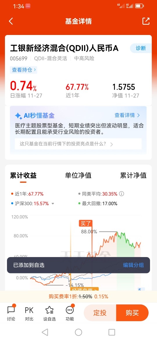 因此我持有的是工银新经济混合(QDII)人民币A(005699),因为工银瑞信基金在投资领域相当专业。@工银瑞信基金