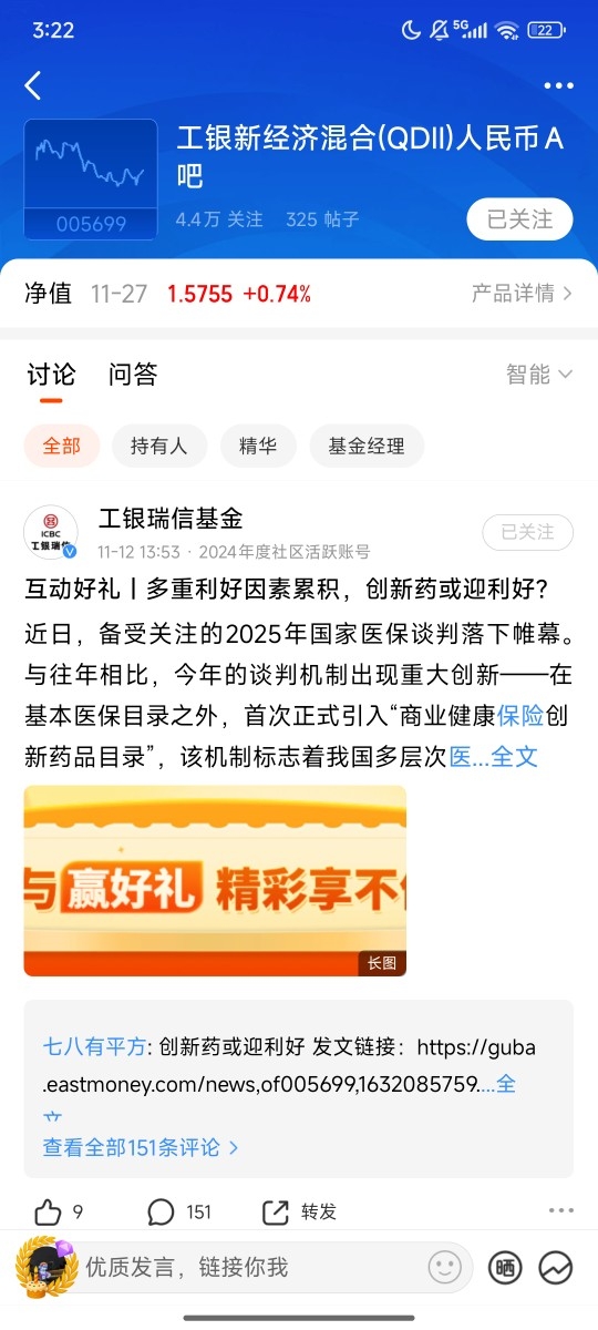 #创新药或迎利好#看好$工银新经济混合(QDII)人民币A$ 创新药行业是目前医药行业中逻辑最顺的子行业之一:1,全球新药创新突破层出不穷。多个领域取得了重大进展。2,国内创新药行业正在迅速逼近甚至达到全球第一梯队。3,宏观环境利好利率敏感的创新药行业。展望后市,创新药板块,尤其是港股的创新药板块有相当多的公司已经非常低估,仍然看好今年创新药板块的机会。