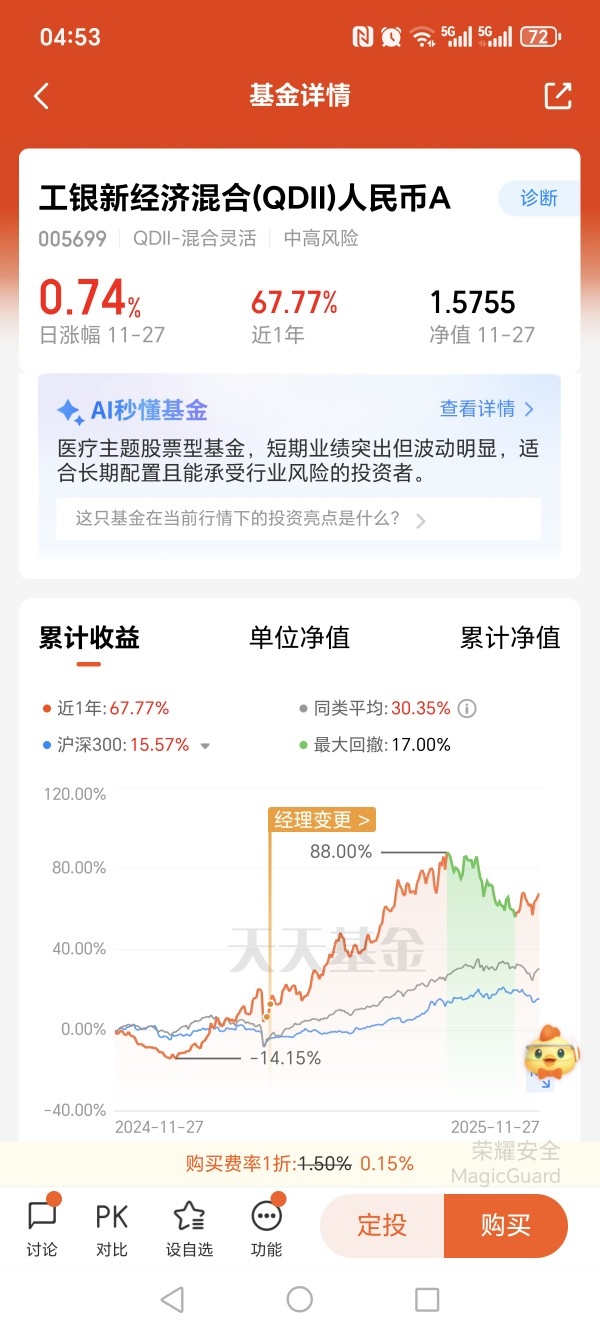#创新药或迎利好#持续看好创新药行业的长期发展。政.策面上,2025年6月国家联合推出的《支持创新药高质量发展的若干措施》堪称一场"及时雨"。这份16条从研发、支付到医院准入全链条支持创新药发展。政.策明确提出用医.保数据为创新药研发"导航",帮助药企精准把握临床需求,避免同质化竞争;同时要求医疗机构不得以药占比等理由影响创新药配备,且医.保目录内谈判药品可不受"一品两规"限制,直接打通了创新药进医院的"最后一公里"。支付端还鼓励商业健康保险与基本医.保衔接,增设商业健康保险创新药品目录,构建多元支付体系。这绝非短期刺激,而是着眼长远的制度性安排,为创新药企业提供了确定性成长环境。从估值角度看,尽管2025年创新药板块已有显著涨幅,但当前创新药公司只是从极低的估值洼地修复到相对合理水平,并未出现泡沫化。事实上,中国创新药企的研发能力已得到全球认可,2024年海外授权交易总额超500亿美元,2025年二季度又多笔重磅授权交易达成,这种"中国研发、海外授权"的模式为企业打开了更广阔的市场空间,但当前估值尚未充分反映这一全球化潜力。工银新经济混合在创新药领域保持了较高仓位,重点布局估值合适、研发实力强、产品有出海潜质的公司,这种策略恰好契合行业发展趋势。我持续看好工银新经济混合纯粹的投资策略和基金经理的专业能力。该基金几乎全部资产投向保健行业,2025年三季度末保健行业持仓占比高达84.85%,是一只极为纯粹创新药主题基金。基金经理赵蓓拥有丰富的医药行业投研经验,在全球创新药研发突破层出不穷的背景下,重点关注了ADC药物、GLP-1减肥药、阿兹海默症治疗等前沿领域,并对估值透支的公司及时兑现收益,对具备出海潜质的公司增加配置。这种主动管理能力在创新药投资中尤为重要,因为需要精准判断哪些企业能在"供给侧改.革"中胜出。从历史业绩看,该基金在赵蓓2025年4月管理以来表现突出,截至2025年三季度,A份额近三个月收益率达33.78%,大幅超越业绩比较基准的11.62%;近一年收益率达60.45%,近六个月达52.92%,证明了基金经理在创新药领域的选股能力。虽然基金短期可能受市场情绪波动影响,但创新药行业的基本面持续向好,支持力度空前,出海逻辑不断验证,我选择在市场调整时逢低布局,相信长期持有能够分享中国创新药行业的成长红利。