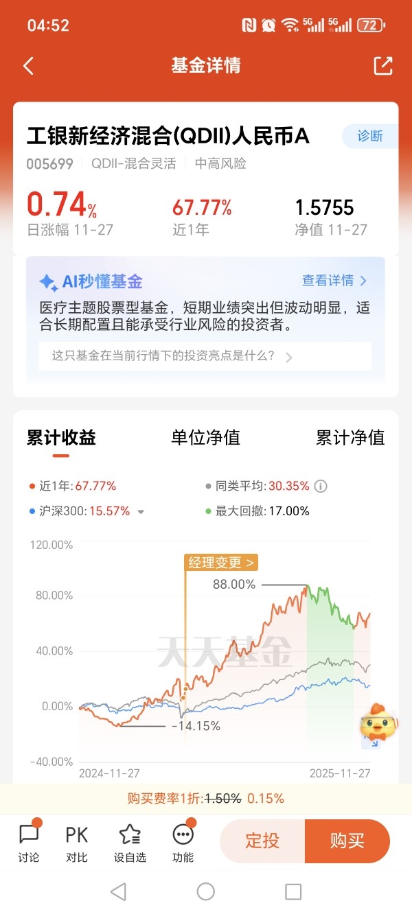 #创新药或迎利好#我认为创新药的热度并非昙花一现,而是建立在基本面改善的长期趋势。我看好创新药板块的全球竞争力和估值修复空间。中国创新药企业正从本土走向全球,2024年海外授权交易超90笔,总金额超500亿美元,2025年这一趋势更加明显。这种"license-out热潮"不是偶然,而是中国药企研发实力提升的直接体现,意味着企业收入来源将从依赖本土市场扩展至全球市场,天花板大幅提升。政.策环境也前所未有的友好。2025年7月出台的《支持创新药高质量发展的若干措施》中,专门提到"促进创新药全球市场发展",国家将搭建平台助力创新药企业拓展海外市场,同时提供价格支持。这不再是简单的价格保护,而是主动为企业出海创造便利。国内方面,医家正在优化集采,医疗机构使用创新药的限制也被大幅放宽,甚至DRG/DIP支付改.革中也对创新药使用给予特例单议的支持。这种国内外的协同效应,为创新药企业创造前所未有的发展窗口。我选择工银新经济混合基金进行布局,主要是看中在创新药投资上的灵活操作。该基金保健行业持仓占比84.85%,重点投资港股和A股创新药公司。基金经理赵蓓保持了高仓位,但结构上有所调整,减持了部分短期内涨幅过大、估值透支的公司,同时精选香港市场优质创新药IPO个股参与锚定投资。这种主动管理在高波动的创新药投资中极为重要,因为她不仅关注企业当前价值,更看重长期出海潜力。从估值角度看,虽然该基金2025年以来业绩亮眼,近一年收益60.45%,近六个月52.92%,三季度单季33.78%,但我认为这仅仅是估值修复的开始。创新药板块此前处于"极低的估值洼地",经过上涨后也只是回到合理水平。与海外同类公司相比,中国创新药企的估值仍偏低,随着出海能力持续被验证,估值重估有望继续。工银新经济当前规模约0.94亿元,操作上可以更灵活,在创新药这一高成长领域中获得超额收益。我对创新药的后市机会保持乐观,全球创新药研发仍在突破不断,从ADC药物到GLP-1减肥药,从阿兹海默症治疗到双抗技术,中国企业在多个细分领域已具备全球竞争力。工银新经济混合作为专注新经济主题的QDII产品,既能投资A股,也能布局港股和海外市场,这种跨市场能力在创新药投资中尤为重要。因此,我选择在市场出现调整时逢低布局,着眼于创新药行业3-5年的长期成长机会。