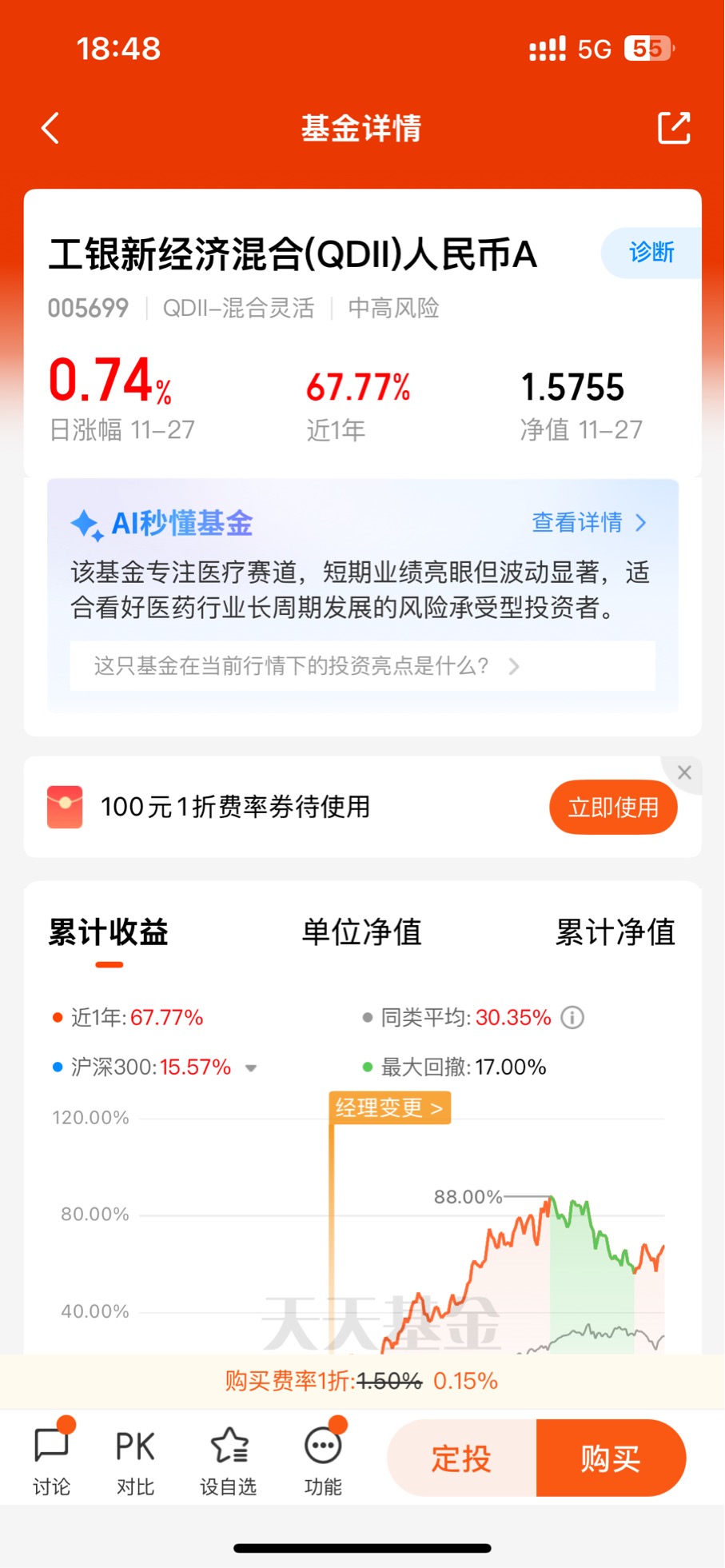 $工银新经济混合(QDII)人民币A$ 重仓港股创新药龙头,聚焦研发管线丰富、出海潜力突出的优质标的,长期业绩稳健。当前板块回调带来低位布局良机,适合看好创新药产业成长的投资者,建议定投分批入场,把握赛道红利!@工银瑞信基金