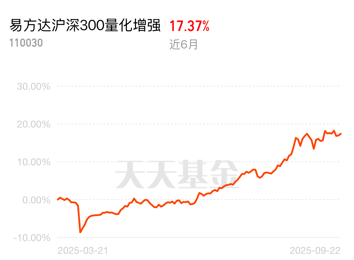 翻数据偶然见它,易方达沪深300量化增强今年涨18.33%,跑赢沪深300指数1