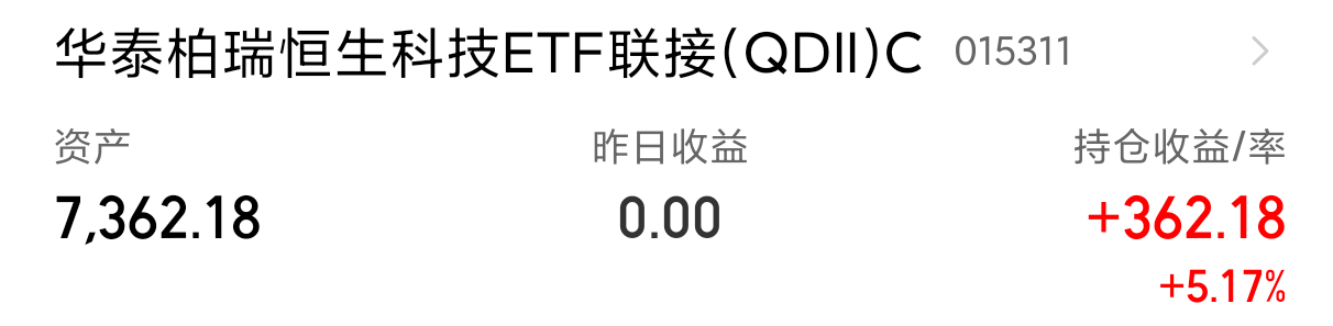 恒生科技继续持有待涨了 $华泰柏瑞恒生科技ETF联接(QDII)C(OTCFUND|015311)$