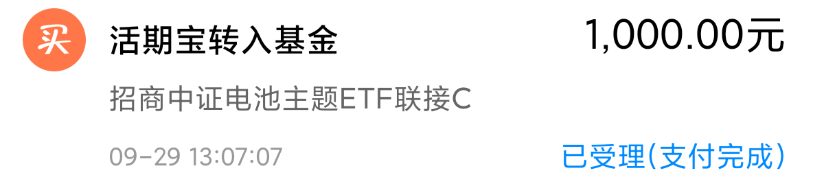 再来买进1000的 $招商中证电池主题ETF联接C(OTCFUND|016020)$