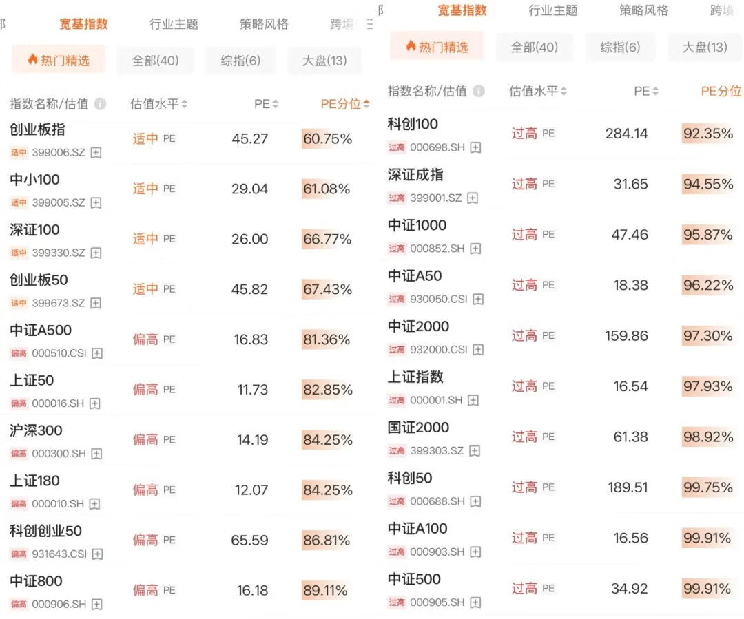 我看了一些核心宽基的估值,目前创业板的估值适中,其它估值普遍较高了。市场的表现是千变万化的,投资的逻辑也需要不断地进化。现在不能只看估值来决定是否持有,毕竟高估就卖的早该清仓了。昨天券商爆发,像券商之前一直是牛市旗手,因为牛市来了交易量暴涨对业绩有利,但这轮行情里券商的表现有些迟缓。很多人根据历史经验,赌牛市就提前埋伏了券商,但结果可能不及预期。