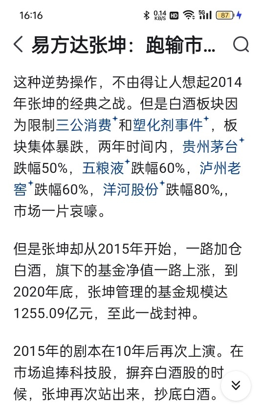 我们被深套五年的基民当然希望张坤重振雄风,但是历史背景不一样了,现在你就是白酒的