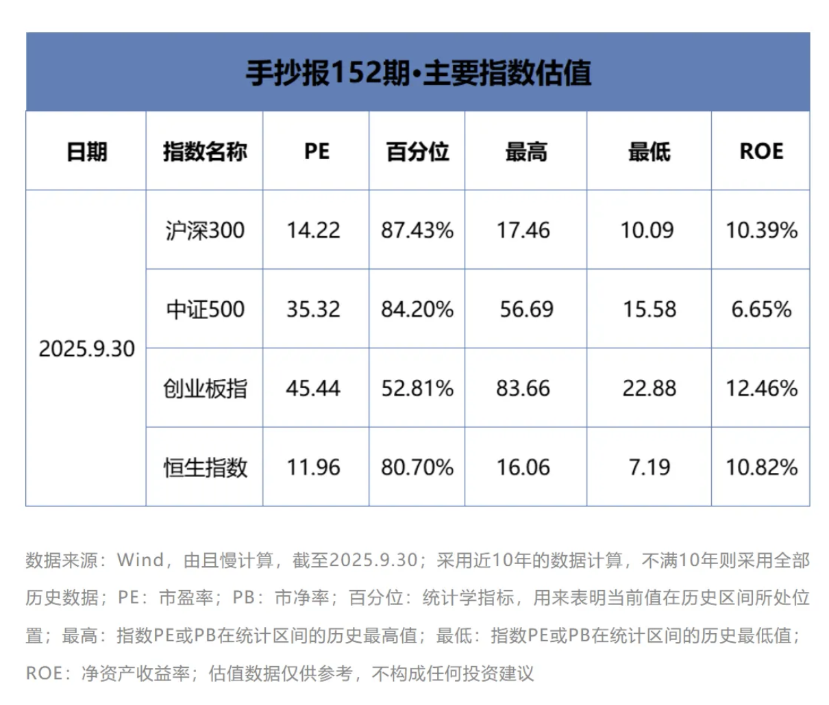 2、估值变化:与节前的一周相比,主要指数的估值继续升温,其中创业板指的10年期估值百分位突破50%,沪深300、中证500、恒生指数,更是突破了80%。