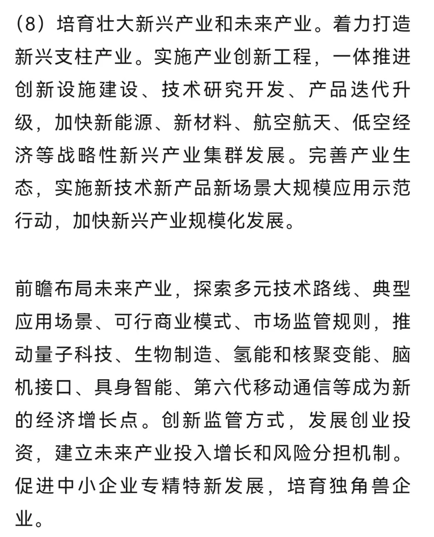 2、新兴产业和未来产业。第8条明确了4+6的格局。《“十五五"布局“4+6”产业群,更新的小登来啦!》周一已专门进行解析。