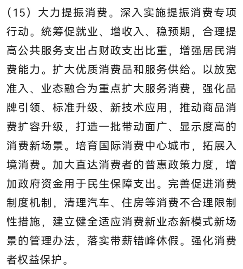 5、提振消费。第15条专门讲提振消费,主要是要增强居民消费能力。这波行情消费行业没怎么涨,估值还停留在3000点水平,后市有望得到提振。
