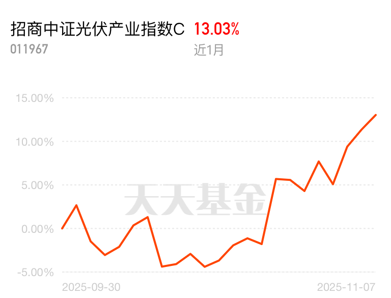 现在农村安装光伏的越来越多,既响应了国家政策,又能给自己带来收益,一举两得。招商中证光伏产业指数C近1个月涨了13.03%,跟着农村光伏的热潮,分享政策红利。$招商中证光伏产业指数C$