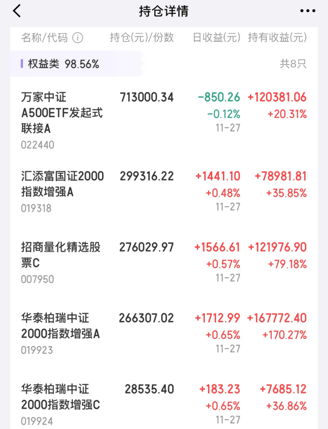 我重仓了A500、国证2000、中证2000、量化基金等,长期超额收益明显。。趁着本周反弹,逢高止盈落袋为安,我今天止盈了10%。