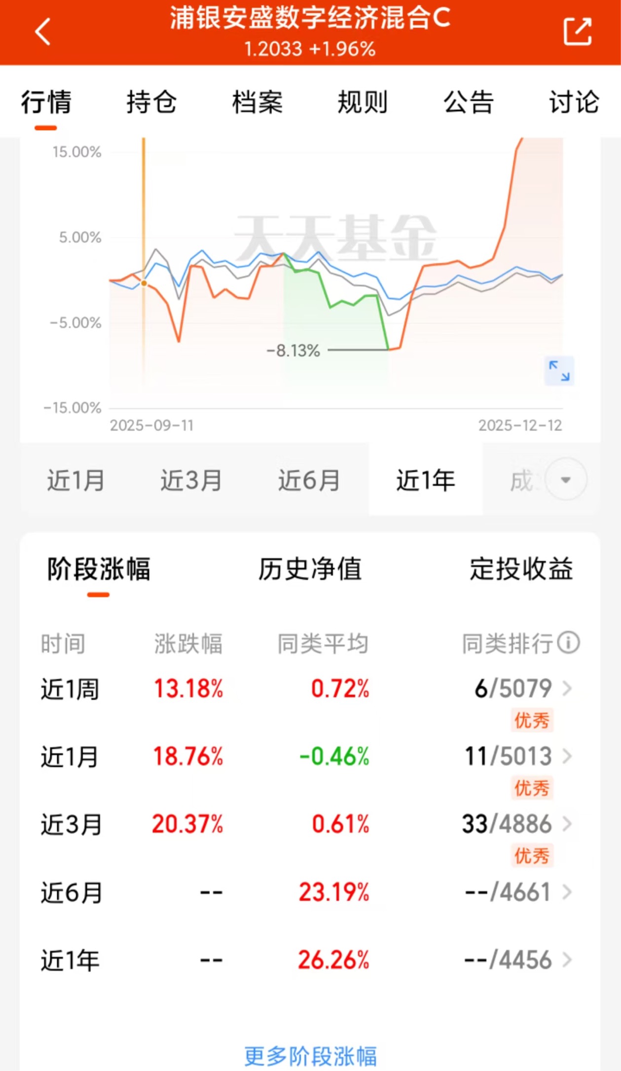 一周涨了13%,新人就是猛!$浦银安盛数字经济混合C$近一周业绩T0P1,CPO