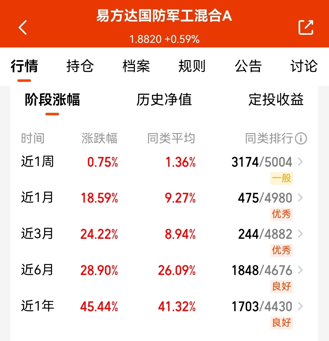 我还是比较看好这支$易方达国防军工混合A$ ,今天估值也是大涨超4%,持仓航空航天板块,同时沾上卫星概念,军工板块也更有想象空间;
