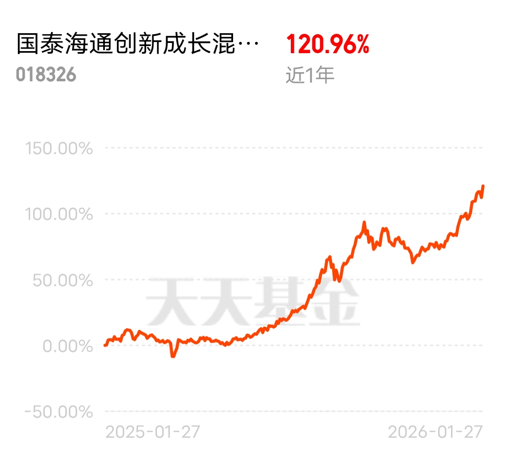 近1年120.96%的收益直接拉满,$国泰海通创新成长混合发起C$就是半导体赛道