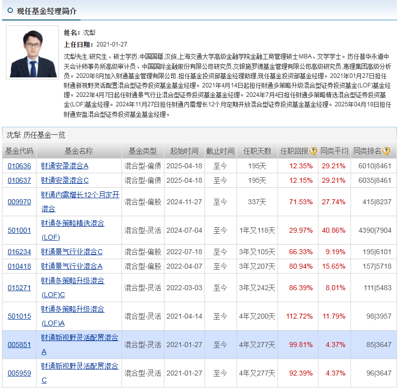 这只基金的基金经理是沈犁,他2020年8月加入财通基金,2021年1月27日开始担任本基金的基金经理。此外,他还管理着财通多策略升级混合型证券投资基金等多只基金。丰富的管理经验可能会让他在投资决策时更加游刃有余,为基金的收益提供一定保障。