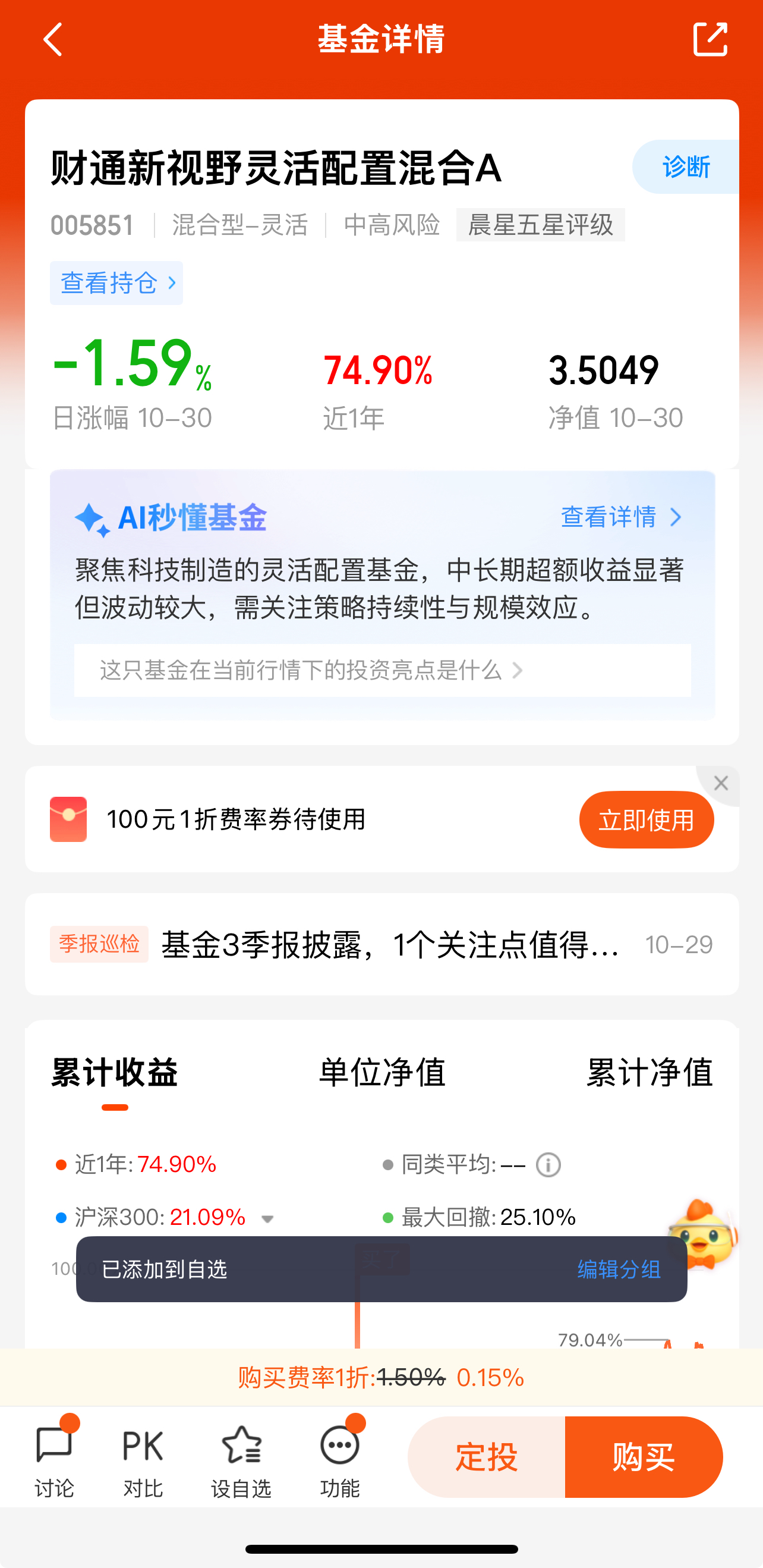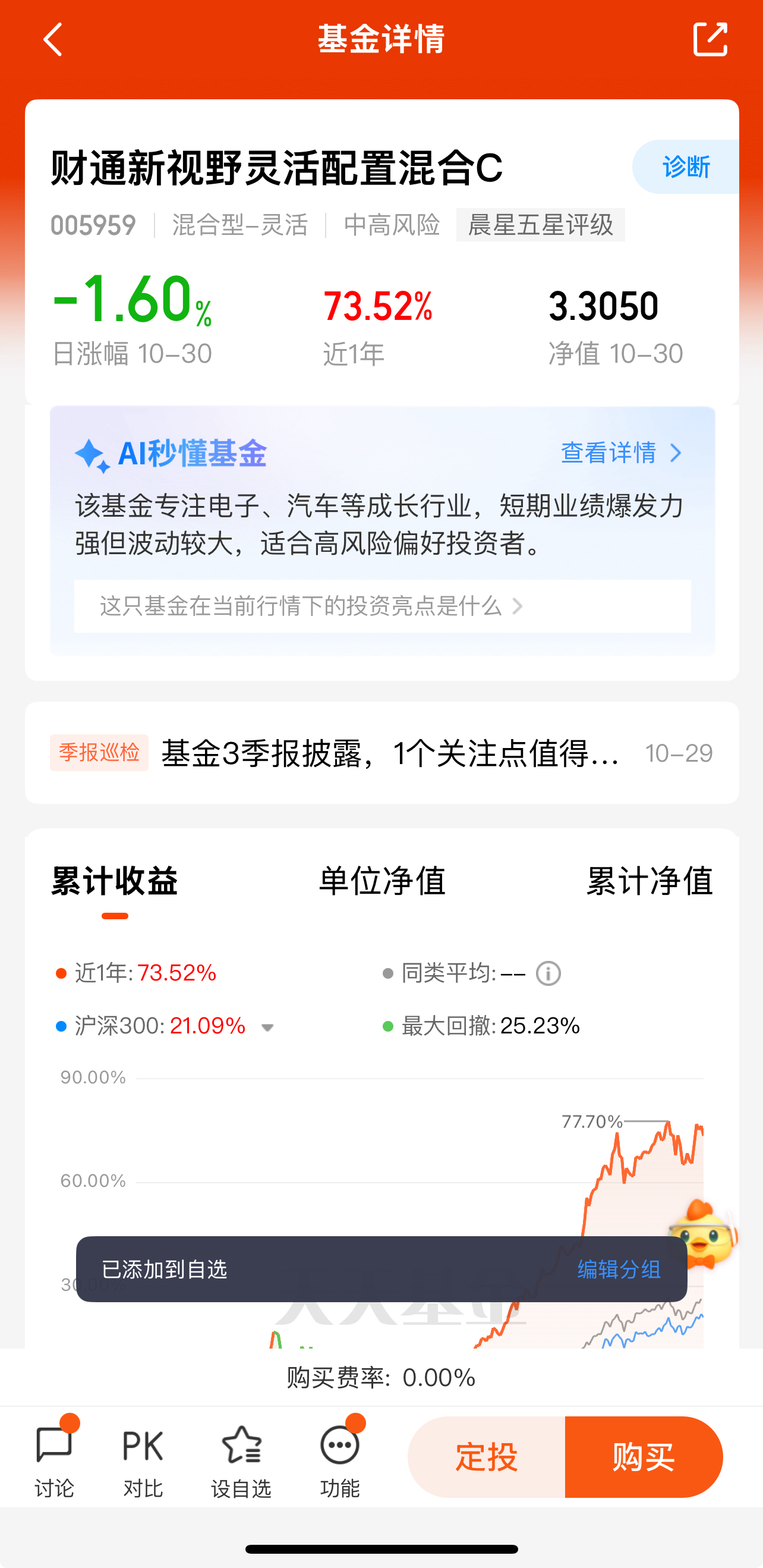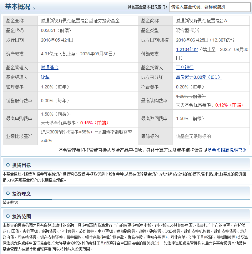 如果你对基金投资感兴趣,$财通新视野灵活配置混合A$ 是一个可以考虑的选择,但投资有风险,还是要结合自己的风险承受能力等情况谨慎决策。