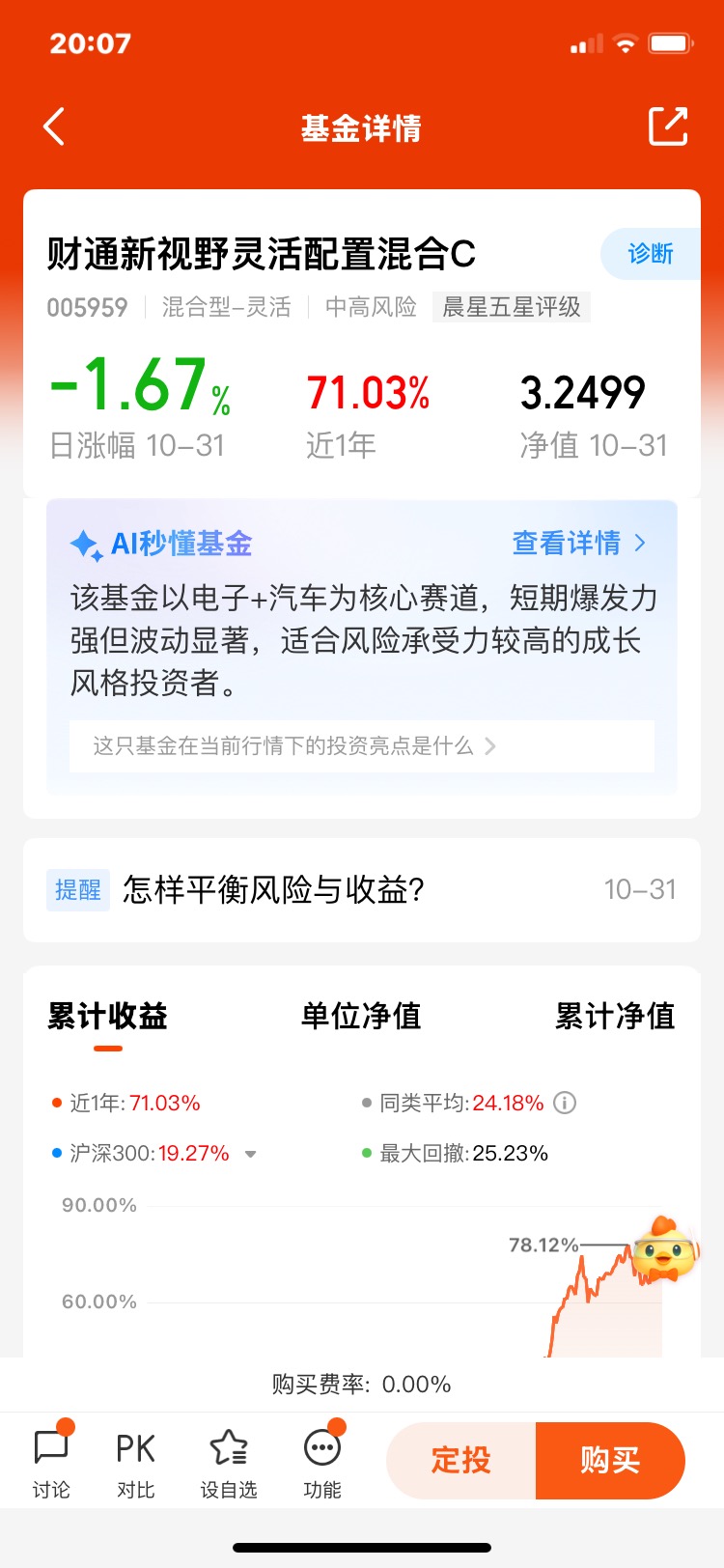 历史表现方面,$财通新视野灵活配置混合C$在过去几年里,整体表现比较平稳。虽然不像一些纯科技基金那样在牛市中暴涨,但它在市场回调时回撤控制得较好,体现了灵活配置的优势。比如,2022年市场波动大时,它的净值波动相对温和,这说明基金经理在风险管理和资产配置上做了功夫。不过,历史业绩不代表未来,投资者要看长期趋势。