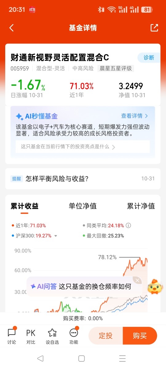 首先要锚定个人的风险底线,这是平衡的基础。比如 3 年内需要用的购房款、子女教育金,这类资金的 “刚性需求” 决定了其不能承受本金亏损,即便遇到高收益机会也应排除在权益类资产之外,避免 “急用钱时被迫割肉” 的被动局面。同时,要为单一资产或单一行业设定仓位上限,比如单只基金不超过总资产的 10%,AI、新能源等主题基金合计不超过 30%,防止某一领域的波动直接冲击整体组合。
