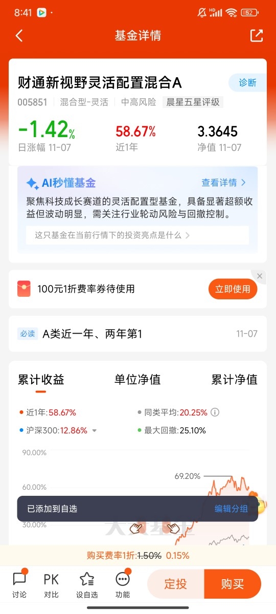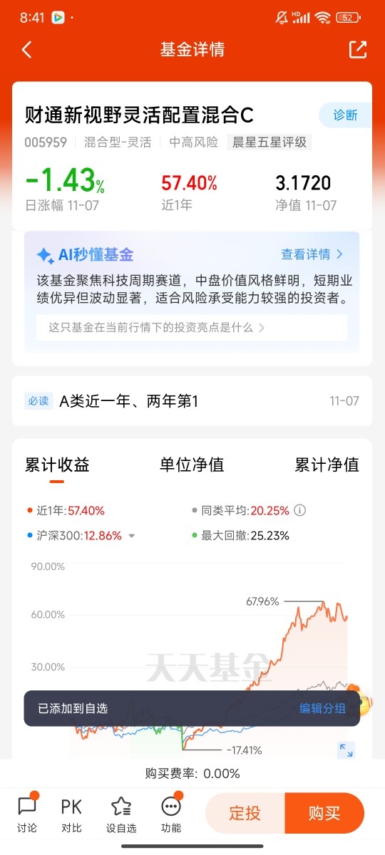 判断一个投资标的是否优质,需要从多个维度综合考量。以基金为例,不能只看短期收益,还要关注其长期业绩稳定性、基金经理的投资能力、基金公司的投研实力等。比如财通新视野混合A类,近一年、近两年净值累计上涨均排名同类第一名,这样的业绩表现不仅体现了基金经理的专业能力,也证明了基金的投资策略具有较强的有效性。此外,还要关注基金的持仓结构、行业分布是否合理,是否存在过度集中于某一行业或个股的风险。