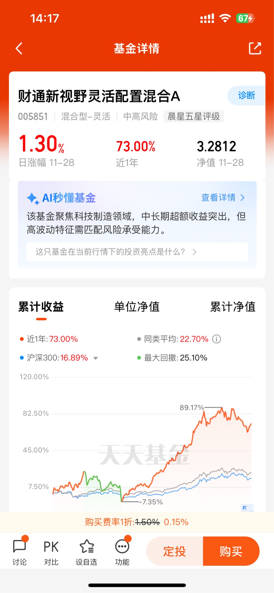 从基金本身的属性来看,财通新视野混合A的持仓偏向制造和科技赛道,既踩中了产业升级的长期红利,又具备一定的成长弹性。但不同于纯科技主题基金的激进,它会通过仓位调整和标的筛选控制波动——基金经理会基于“胜率、赔率、景气度”三维度选品,在赛道热度过高时降低仓位,在板块被错杀时逢低布局,这种灵活的策略本身就自带“平衡基因”,能在一定程度上对冲单一赛道的波动风险。