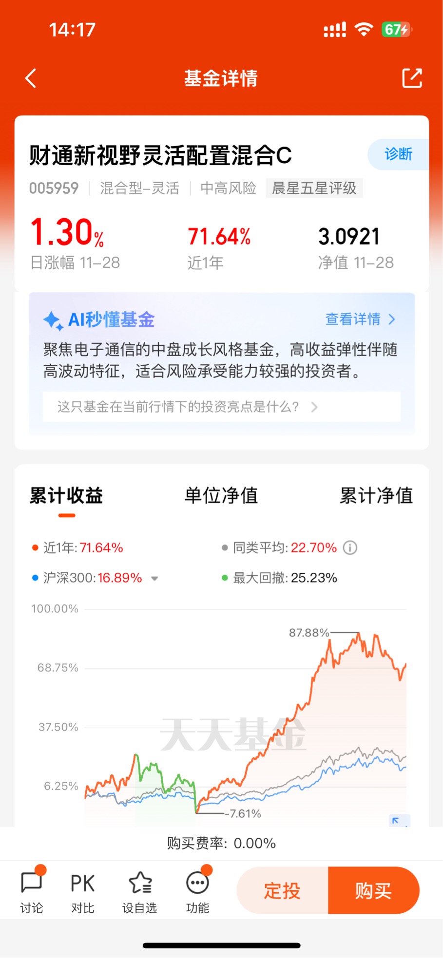 在风险与收益的天平上,没有绝对的标准答案,但选对契合自身需求的基金,再配合科学的持有策略,就能让天平始终朝着自己想要的方向倾斜。财通新视野混合A的存在,正是给了稳健型投资者一个兼顾成长收益和风险控制的可行选项。