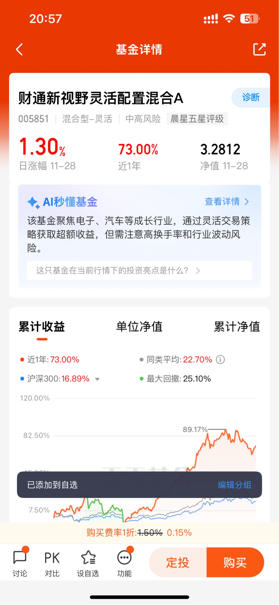 平衡风险与收益的核心,始于资产配置的灵活性与均衡性。混合基金天然具备“进可攻、退可守”的属性,无需固守单一资产类别,能够根据市场环境灵活调整股票、债券及现金的配置比例。财通新视野混合A将这一优势发挥到极致,基金经理沈犁通过降低单一行业暴露度,构建了涵盖消费、科技、周期等多板块的均衡组合,利用不同板块的负相关性对冲风险。当前其持仓既聚焦半导体、算力基建等硬科技主线,又布局智能家居出口、跨境电商等消费复苏赛道,硬科技与消费板块的互补配置,既保证了在AI浪潮、数字经济等风口下的收益弹性,又通过消费板块的稳健性平滑组合波动。这种“不把鸡蛋放在一个篮子里”的策略,让基金在股市繁荣时能通过股票仓位获取高收益,在市场下行时依托多元配置抵御风险。