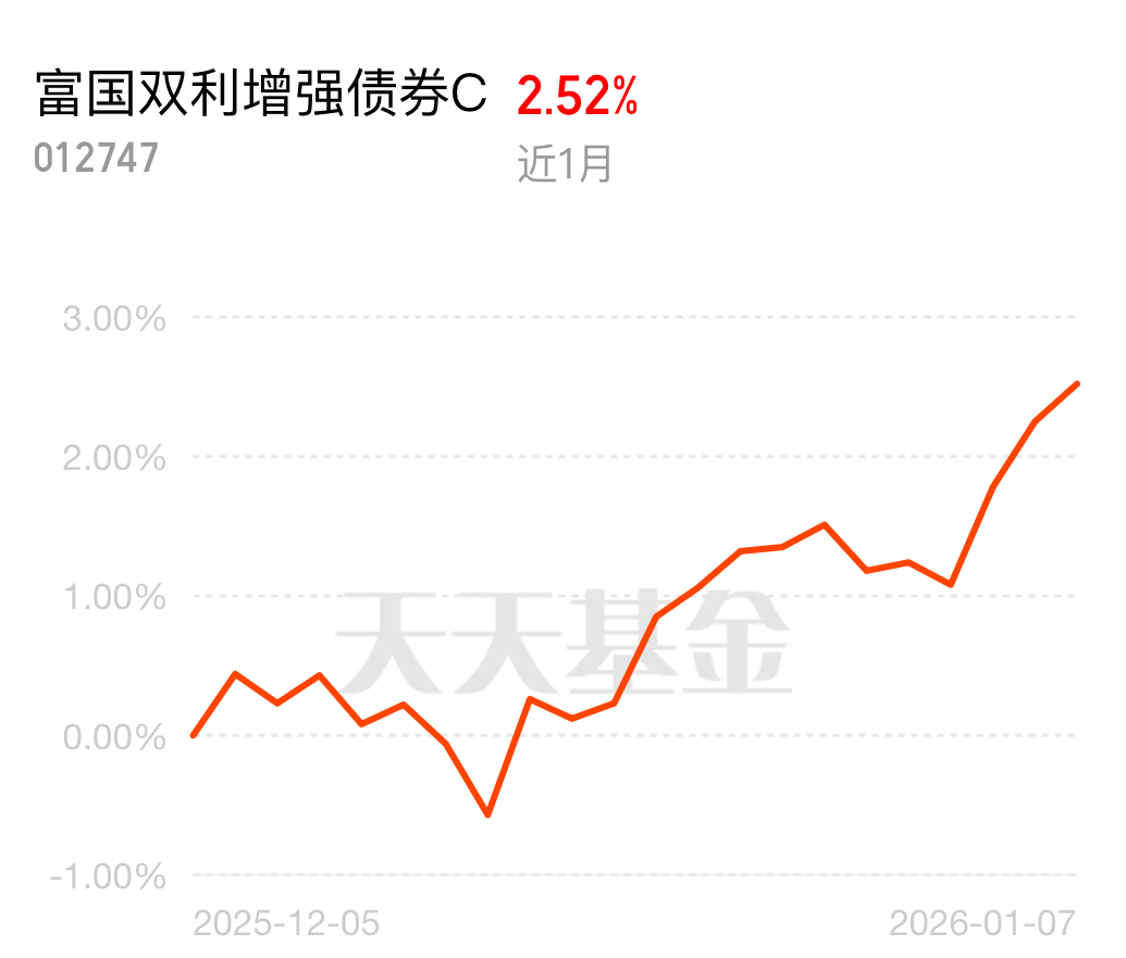当前富国双利增强C连涨三天,还创了新高,股市开门红也带它走强;近1周赚了1.3%,近1个月涨了3%,在同类里发挥挺亮眼。和华泰保兴尊利C放一起,一个偏重稳健打底,一个顺势增强弹性,组合起来配置节奏更完整,拿住别松手,适合想兼顾稳与进的朋友。